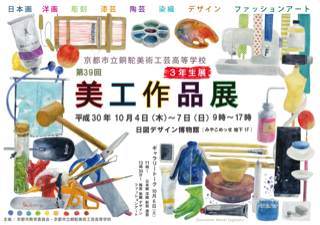 昨年度より京都市美術館本館が改修中のため,会場確保が困難な状況となり,今年度この時期には、3年生のみの作品展を,日図デザイン博物館を会場に開催いたします。生徒ひとり一人が精一杯努力して制作した作品をぜひご観覧いただきたく,ご案内いたします。