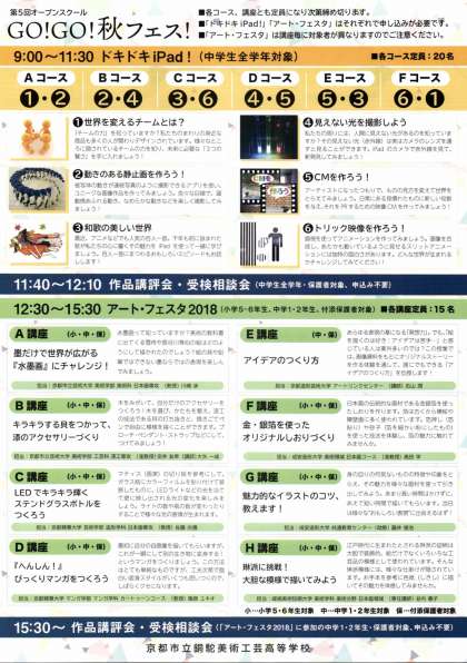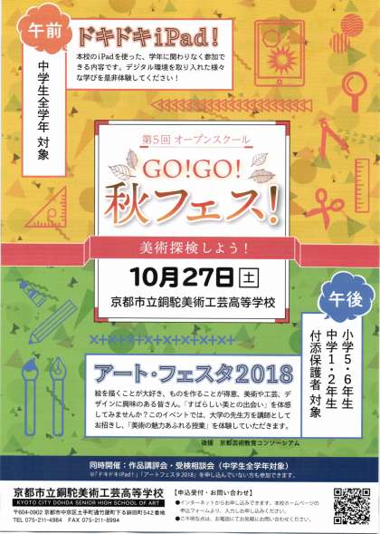 【申込受付中】10月27日(土)第5回オープンスクール「GO!GO!秋フェス! 」〜ドキドキiPad!・アートフェスタ2018〜