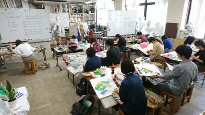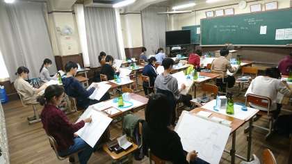 大学志望先別に実技課題が異なるため、それに応じた課題を用意し、各教室に分かれて受検しました。午前・午後、長時間集中して取り組みました。