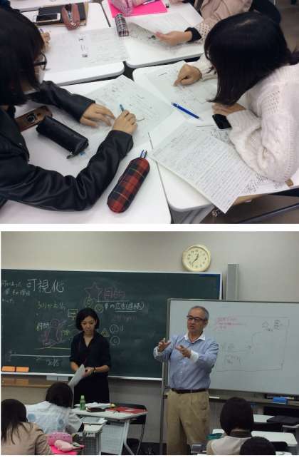 後期最初の授業は前回に引き続き,元京都精華大学人文学部教授の筒井洋一先生と株式会社CARVANCL(カーバンクル)代表取締役の徳田行伸さん,NPO法人グローカル人材開発センタースタッスの外崎佑実さんの協力を得て,「プロセスを視覚化するグラフィックファシリテーション」というテーマで講演とワークショップを行いました。