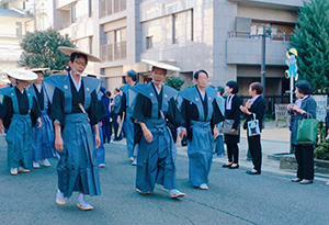 学区の皆様が早くから準備をされ、当日は、銅駝会館で着付け、本校南側道路で列を整え9:00頃出発。学区内を歩いてお披露目のあと御所に入りました。