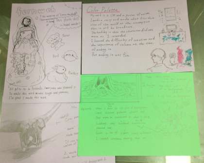 3年生アートフロンティアコース「コミュニケーション英語3」では、10月4日〜7日に開催の「美工作品展」に向けて制作、出品した作品について、英語とイラストで紹介カードを作成しました。