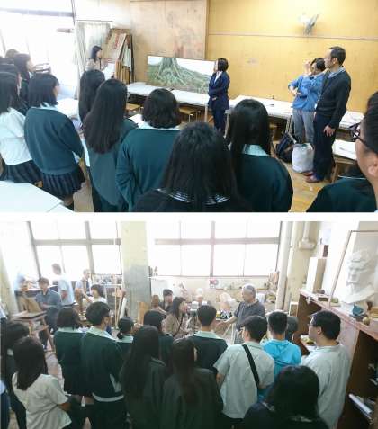 僑泰高級中学の生徒は日本画・洋画・彫刻・漆芸・陶芸・染織・デザイン・ファッションアートの各実習室を回り、教員や3年生生徒からの説明を聴いていただきました。