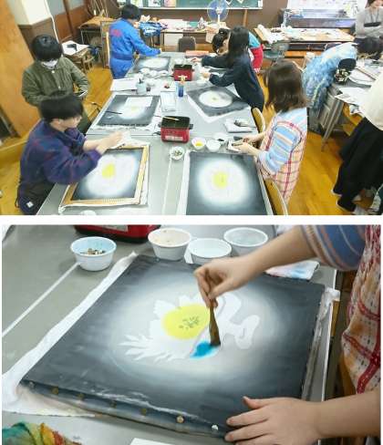 中2 漆芸分野  研ぎ出し蒔絵パネル