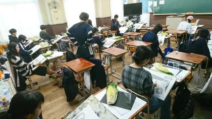 教員が進路希望先の課題をふまえた異なる講座を用意し、生徒はそれぞれが選んだ講座で熱心に課題に取り組んでいます。この進路探索期間は2月にも設定しており、生徒の希望、適性などをよく見極め、担当教員が丁寧に導いていきます。