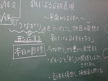 この課題では、つながりをテーマにし、独自の発想で新たな立体をつくる」という目標が挙げられています。