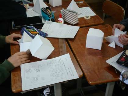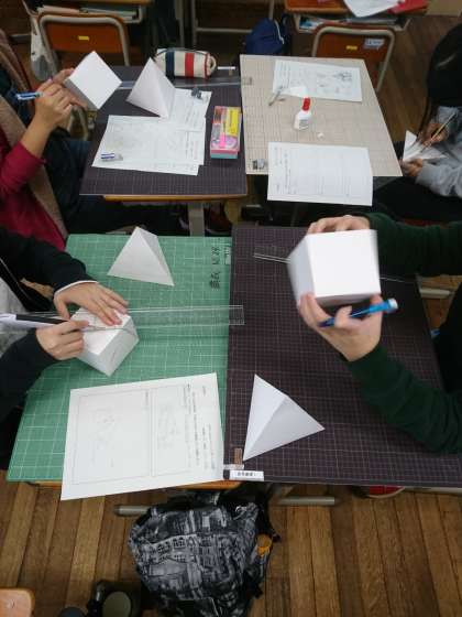 1年専門科目「表現基礎1」 紙による立体表現 「平面から立体へ」