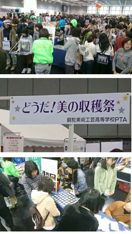 12月8日(土) 岡崎みやこめっせで「第21回京都市PTAフェスティバル」 本校PTAがブース出展「どうだ!! 美の収穫祭」。本校生徒ボランティアが震災復興支援募金活動。 ぜひご来場ください!