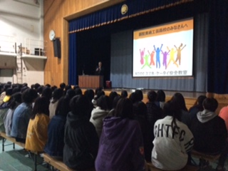 主に4つの動画を使い、SNSのトラブルや、ネット・ゲーム依存、ネットトラブルによる人間関係の問題など、高校生に身近でかかわりの深い事例を紹介していただきました。生徒は皆な真剣な態度で話しを聴き、時には笑いを交えつつ、大事なところではうなずいたりと、大切な学びの機会となりました。