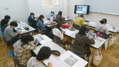 生徒は、自分が選んできた実際の空間の写真と、制作する作品の構想をタブレットを使いながら考えているところです。