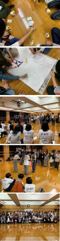11日午後に、京都に入られた宮城野高校美術科の皆さんは本校ボランティア生との案内で美工作品展を見学していただき、その後本校のマルチホールで交流会を行いました。