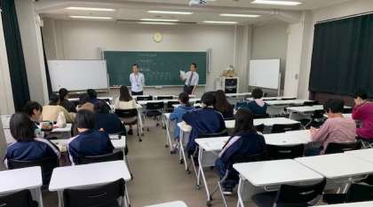 当日、講座をサポートするために本校のボランティアスタッフが入ります。募集したところ18名の生徒が積極的に応募してくれました。26日の昼休みに昼食を持ち込みながら、ボランティアスタッフのミーティングを行いました。