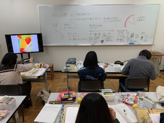 1年生の「表現基礎1」では、レモンをモチーフにした色彩構成の課題に取り組んでいます。