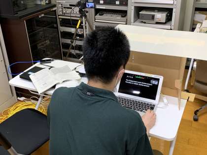 ※写真上 仮スタジオから担当教員がZoomを使いながら指導