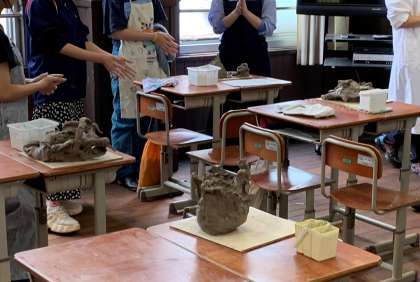 生徒は作品制作中の手の感覚,手の動きを思い出しながら,自分の作品をピタリとあてていました。