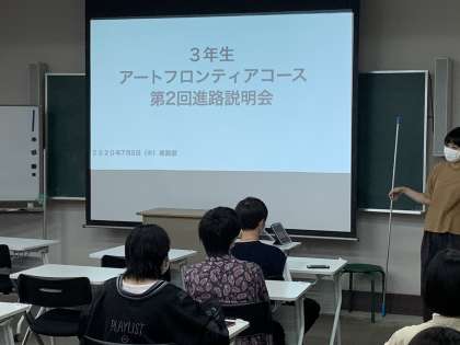 本日8日,LHRの時間を活用して,3年生の進路説明会をアートフロンティアコース,アートパイオニアコースそれぞれ分かれて行いました。