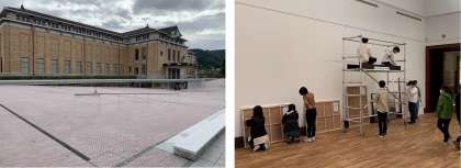 昨日会場に作品を搬入したあと,美術館で準備を始めましたが,本日も午前中から準備を行いました。生徒は自分の作品だけでなく,同じ専攻の仲間の展示も手伝います。