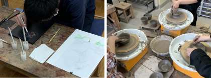 1年生の「造形表現」は後期になってから,選択した2分野を,火曜日・木曜日に並行して実習授業を行っています。