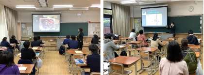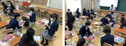 また,今年度はコロナ禍の中での開催となり,感染対策のため,保護者の方は廊下から授業の様子を見学いただく形となりましたが,隣の教室で,保護者の方を対象に本校の特色ある教育活動について教員から説明をさせていただき,本校の教育をご理解いただく機会となりました。今回の取組が,中学生,保護者の方にとって進路,高校選択の一助になれば幸いです。
