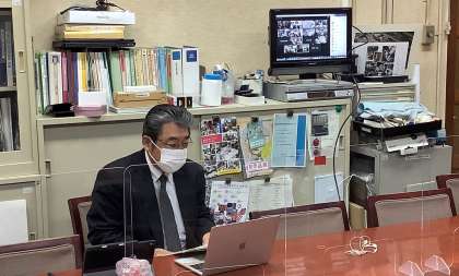 訓練実施後,Zoomを利用したオンラインで講評会を実施しました。講評会では,まずiPadで撮影した不審者と本校教員の対応の様子をオンラインで視聴し,その後,中京警察署少年課の森本係長様から「不審者への応対方法」「教室の照明は消すこと」等の講評を頂きました。本日の訓練での学びを生かし,日頃から危機管理意識をもって行動できるよう心掛けたいと思います。