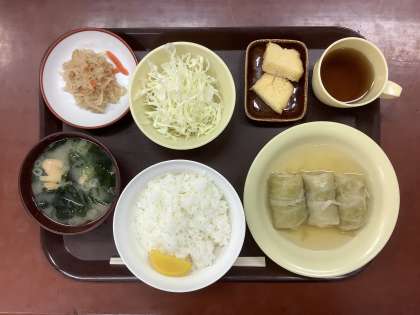 優しい味のするロールキャベツは,生徒たちには少し物足りない味付けになっているかもしれませんが,健康のことを考えると,薄味で良いのではと思います。