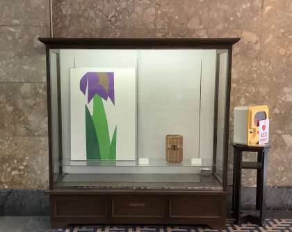 今回はご覧の通り,竹工芸の花籃(はなかご)とアヤメを題材としたシルクスクリーンの作品です。