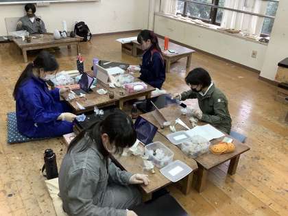 生徒たちは,少しずつ仕上がっていく漆芸作品の独特な発色や質感に引き込まれながら,一生懸命取り組んでいました。