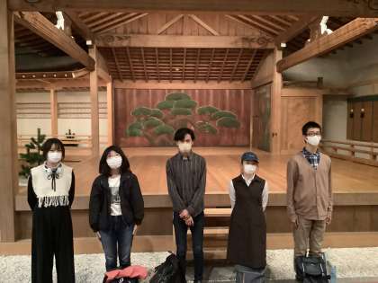 10月20日(木)の夕方、金剛能楽堂で開催された「市立高校能楽鑑賞会」に1年生3名、2年生2名の合計5名の生徒が参加しました。