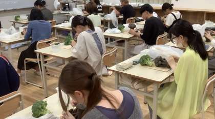 1年生の表現基礎 l では、ブロッコリーを多角的に観察して、存在感のある立体を粘土で造形する課題を行っています。