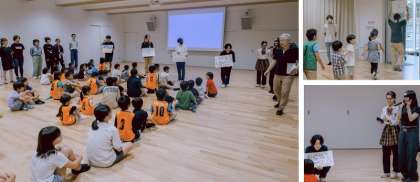 3年生の表現演習(E講座)授業において、地域貢献の一環として崇仁児童館と連携授業を行い、児童館からは約40名を超える地域の児童が参加してくれました。