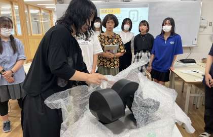 授業の始めには生徒の前で作品の開梱を行い、どんなものを使ってどんな風に梱包されているのかも一緒に確認しました。作品づくりだけではなく、作品の扱い方についても実物を見ながら学習できるのは、所蔵作品ならではの体験です。