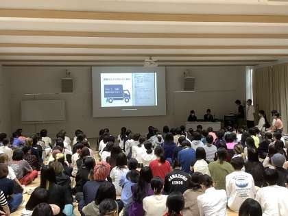 そして今日のLHRの時間を利用して、インターンシップに参加した生徒たちがその経験を報告する「キャリアアップ報告会」を開催し、1,2年生全員に報告しました。