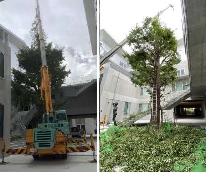 5日(木)、本校中庭のシンボルでもある大銀杏の剪定を終えました。