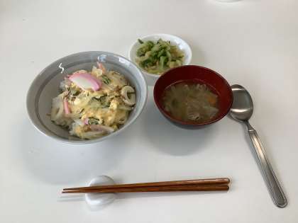 メニューは、「木の葉丼と豚汁、そしてキャベツの胡麻和え」です。