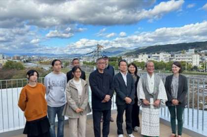 また,川俣さんの橋のプロジェクトについては,実際の作品が七条大橋の南側の鴨川両岸に設置され,見学会も開催されました。門川京都市長もご来校いただき,参加生徒と一緒にテラスから作品を鑑賞しました。