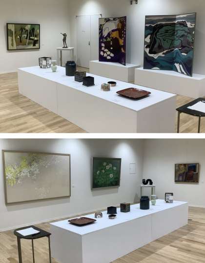 日本画・洋画・彫刻・漆芸・陶芸・染織の6分野16点の作品を展示しています。期間中には毎日本校教員によるギャラリートークも昼休みに実施しています。