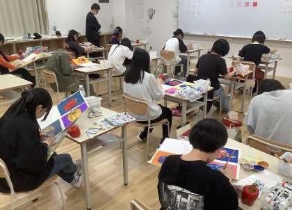 生徒たちは、色彩の三属性の学習をしっかり踏まえながら、自分なりのイメージをもって美しく表現していました。