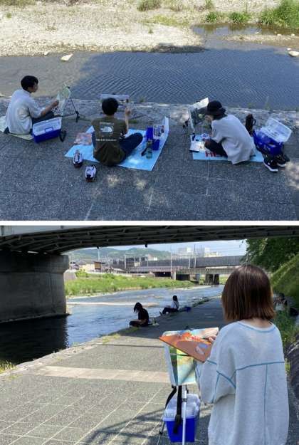 鴨川河畔を描く (2年:洋画専攻実習 l )