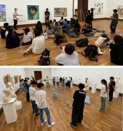 8日(火)、美工作品展の会場となる美術館で、作品展示が終了した専攻では合評会が行われていました。