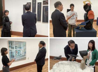 各展示場で教育長賞を受賞した各専攻の生徒たちに声をかけていただき、生徒からは作品制作のコンセプトや制作の工夫、苦労などを話していました。