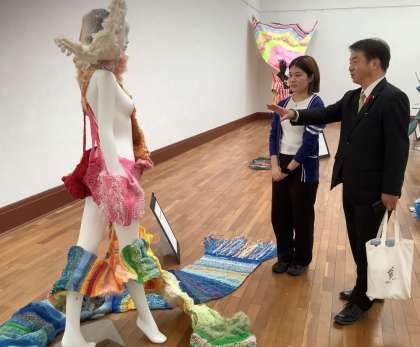 昨日は、本校の連携授業で大変お世話になっています寺田市会議員(元市会議長)もご来場いただき、生徒と作品について語り合うなど、温かい言葉やエールをいただきました。