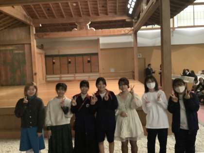 10月31日(木)の夕方、金剛能楽堂で開催された「市立高校生の伝統文化体験事業「能楽鑑賞会」に1年生5名、2年生2名の合計7名の生徒が参加しました。