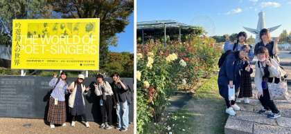 みんぱく創設50周年記念特別展『吟遊詩人の世界』を観覧した後、世界各国の文化や暮らしが詳細に展示されている常設展を観覧しました。当日は快晴で、公園内は多くの人でにぎわっていました。博物館前にあるバラ園に咲き誇るバラも休日の賑わいに彩を添えていました。私たちも、帰りに少しだけ散策しました。部員達は、観覧した展示の中から、各自、興味をもったテーマを選び、レポートを作成し、展示発表する予定です。充実した1日でした。