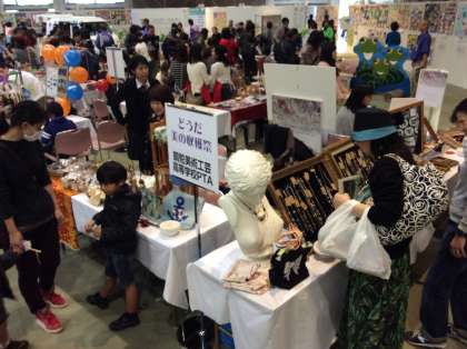 12月12日(土)、京都国際会館イベントホールで「第18回京都市PTAフェスティバル」に本校PTAの皆さんが「どうだ美の収穫祭」というタイトルで出店されました。PTAの方々の手作り布雑貨、アクセサリー、お菓子の販売に、多くの来場者が立ち寄られました。