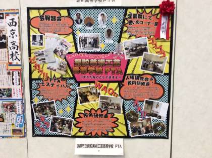 またPTAの方々が作成されたPTA壁新聞は、イベントホールの壁新聞コーナーに掲示されましたが、見事、市立高校PTA連絡協議会会長賞を受賞、また、学校紹介ポスターも掲示されました。