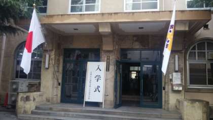 写真は玄関前、入学許可、新入生先生の様子です。