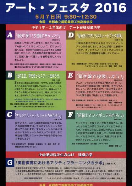 5月7日(土)に中学1・2年生対象の「アート・フェスタ2016」を開催します。