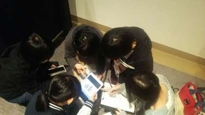 各グループでiPadを活用した作品鑑賞の後、研修室へ戻り、それぞれの鑑賞メモをもとに、iPadで撮影した作品の画像を見ながら鑑賞のまとめを作成しました。グループごとにまとめた内容はみんなの前でプレゼンテーションし、最後に学芸員の方から講評していただきました。