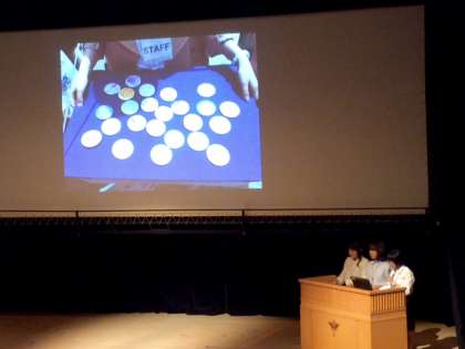 写真 上 本校発表の様子