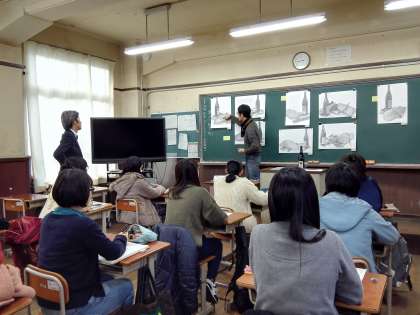 しっかり模擬試験で取り組んだ後、新宿美術学院の講師の方をお招きして、合評会を行いました。2年生は真剣なまなざしで講評を聴き、メモを取っていました。